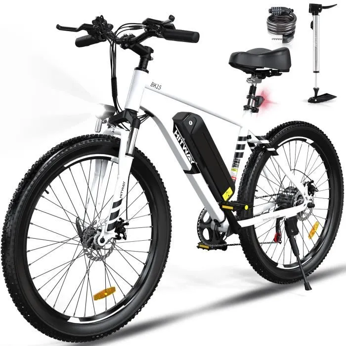 | Nom du produit | HITWAY vélo électrique VAE Blanc, VTT électrique, 26″ x 3.0 Ville E-Bike, Batterie au Lithium Amovible 48V15AH, Shimano 7 Vitesses |
