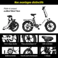 RCB Vélo Électrique,20″ VTT Fat Adulte Pliable,Batterie 36V/15.6Ah,Moteur 250W,Portée 52 à 80 km,Shimano 7 Vitesses,Avec APP, E-Bike Ville
