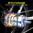 - Autonomie : 52-80 km (varie selon la charge, la température et les conditions de route)